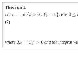 Consider the process $Y=\{Y_{t},t\ge 0\}$ that satisfies the following SDE until its first zero hitting: