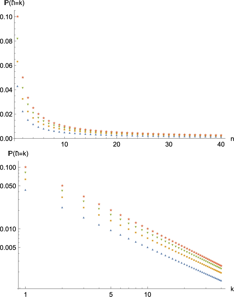 Many properties are known for the tfPp. Let us review some of them. The marginal probability distribution of the process generalizes the Poisson distribution (for $\alpha \to 1$) and can be written as [3, 4]