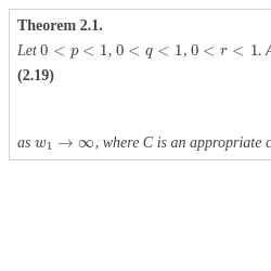 Let $0<p<1$, $0<q<1$, $0<r<1$. Assume that ${\beta _{1}}+1>2{\alpha _{2}}$. Then for ${w_{1}}>1$ we have