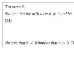 where, as before, ${S_{0}},\kappa >0$ and $\vartheta \ne 0$ are constants. Namely, this is a BS model which has a drift jump in $t=1$. Obviously this market is complete and the unique martingale measure is given by $\frac{d\mathbb{Q}}{d\mathbb{P}}|{\mathcal{F}_{t}}:={Z_{t\wedge 1}}$ where ${Z_{t}}$ is given by (3). Consider a game option with the continuous payoffs