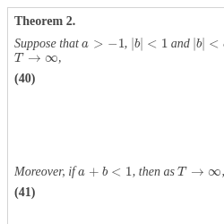 Moreover, if $a+b<1$, then as $T\to \infty $,