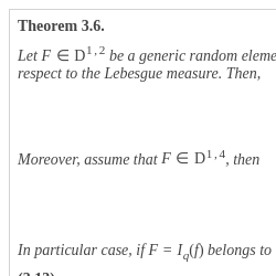 (a) Fix $h:\mathbb{R}\to [0,1]$, a Borel-measurable function. Define ${f_{h}}:\mathbb{R}\to \mathbb{R}$ asThen, ${f_{h}}$ is continuous on $\mathbb{R}$ with $\| {f_{h}}{\| _{\infty }}\le \sqrt{\frac{\pi }{2}}$ and ${f_{h}}\in \mathrm{Lip}(2)$. Moreover, there exists a version of ${f^{\prime }_{h}}$ verifying