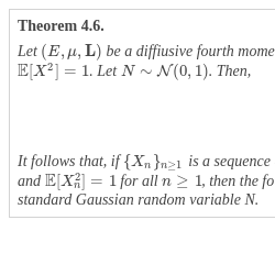 (4) The eigenspaces of a diffusive fourth moment structure are hypercontractive (see [10] for details and sufficient conditions), that is, there exists a constant $C(M,k)$ such that for any $X\in {\textstyle\bigoplus _{i\le M}}\textbf{Ker}\left(\mathbf{L}+i\textbf{Id}\right)$: