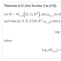 (d) Let X be an integrable random variable. Then, where the supremum is taken over all ${C^{1}}$ functions $f:\mathbb{R}\to \mathbb{R}$ such that $\| {f^{\prime }}{\| _{\infty }}\le 2$ and ${f^{\prime }}\in \mathrm{Lip}(2)$.