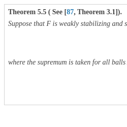 ii) For any fixed $x\in {\mathbb{R}^{d}}$, applying the weak stabilization condition for F with two sequences $({B_{n}})$ and $({B_{{b_{n}}}}(x))$ (together with the translation invariance of η and the moment assumption for the add-one-cost) yields the following convergence As such, Theorem 5.6 quantifies Theorem 5.5 after uniformly strengthening the assumptions of Theorem 5.5.