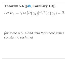 for some $p>4$ and also that there exists an absolute constant $b>0$ such that $\operatorname{Var}[F({\eta _{n}})]\ge b|{B_{n}}|$. Then there exists a finite positive constant c such that