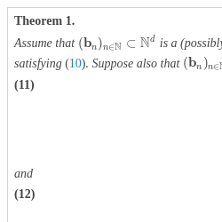 \[ \underset{n\to \infty }{\lim }\frac{{b_{i}^{(\lfloor n\lambda \rfloor )}}}{{b_{i}^{(n)}}}={\lambda ^{{\rho _{i}}}},\hspace{1em}i=1,\dots ,d,\]3 Main results