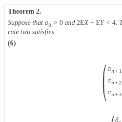 We now ask when does the sum ${X_{1}}+{X_{2}}+Y$ attains its minimum value of two with some positive probability? That happens in cases three and six in Table 1. The next theorem requires two recurrent sequences to be defined: