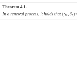 \[ \mathbb{P}({\gamma _{t+x}}\gt y\hspace{0.1667em}|\hspace{0.1667em}{\delta _{t+x}}\gt x)=\frac{\mathbb{P}({\gamma _{t+x}}\gt y,{\delta _{t+x}}\gt x)}{\mathbb{P}({\delta _{t+x}}\gt x)}=\frac{\mathbb{P}({\gamma _{t}}\gt y+x)}{\mathbb{P}({\gamma _{t}}\gt x)},\]Theorem 5.3.