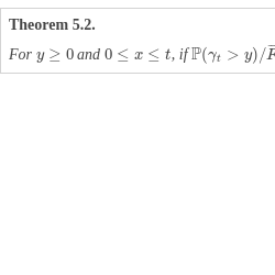 and thus, the probability $\mathbb{P}({\delta _{t}}\gt x\hspace{0.1667em}|\hspace{0.1667em}{\gamma _{t}}\gt y)$ is increasing in y. The result follows directly from (2), on noting that for $0\le t\lt x$ we have $\mathbb{P}({\delta _{t}}\gt x\hspace{0.1667em}|\hspace{0.1667em}{\gamma _{t}}\gt y)=0$. □Next, we note that for any $x,y,t\ge 0$,