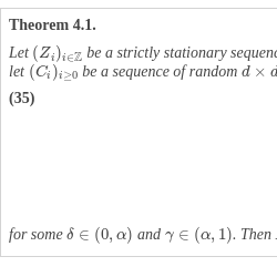 where ${({C_{j}})_{j\ge 0}}$ is a sequence of $d\times d$ matrices (with real-valued random variables as entries) independent of $({Z_{i}})$ such that the above series is a.s. convergent. One sufficient condition for that is ${\textstyle\sum _{j=0}^{\infty }}\mathrm{E}\| {C_{j}}{\| ^{\delta }}\lt \infty $ for some $\delta \lt \alpha $, $0\lt \delta \le 1$ (see Section 4.5 in [13]), where for a $d\times d$ matrix $C=({C_{i,j}})$, $\| C\| $ denotes the operator norm