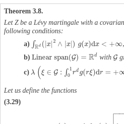 \[ {\int _{{\mathbb{R}^{d}}}}({\left|y\right|^{2}}\wedge \left|y\right|)\nu (\text{d}y)\lt +\infty ,\]By the independence of X and W we see that, for $\lambda \in {\mathbb{R}^{d}}$,