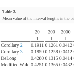 Mean value of the interval lengths in the binormal model. The further details are the same as for Table 1