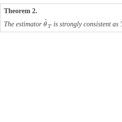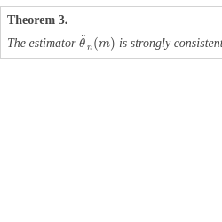 \[\begin{aligned}{}{\widetilde{\theta }_{n}}(m)& =\frac{n\left({Y_{{n^{m-1}}}^{2}}-{y_{0}^{2}}\right)}{2{\textstyle\textstyle\sum _{k=0}^{{n^{m}}-1}}{Y_{k,n}^{2}}}=\frac{{Y_{{n^{m-1}}}^{2}}-{y_{0}^{2}}}{2{\textstyle\textstyle\int _{0}^{{n^{m-1}}}}{Y_{s}^{2}}\hspace{0.1667em}ds+2{R_{n}}}\\ {} & ={\left(\frac{2{\textstyle\textstyle\int _{0}^{{n^{m-1}}}}{Y_{s}^{2}}\hspace{0.1667em}ds}{{Y_{{n^{m-1}}}^{2}}-{y_{0}^{2}}}+2\cdot \frac{{R_{n}}}{{Y_{{n^{m-1}}}^{2}}-{y_{0}^{2}}}\right)^{-1}}\\ {} & ={\left(\frac{1}{{\widehat{\theta }_{{n^{m-1}}}}}+\frac{2{R_{n}}}{{e^{2\theta {n^{m-1}}}}}\cdot \frac{{e^{2\theta {n^{m-1}}}}}{{Y_{{n^{m-1}}}^{2}}-{y_{0}^{2}}}\right)^{-1}}\to \theta ,\hspace{1em}\text{as}\hspace{2.5pt}n\to \infty .\end{aligned}\]