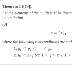 Let the elements of the multiset M be linearly ordered by the relation <. Every permutation π of M has a unique representation as the intercalation