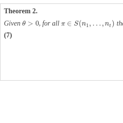 \[ S=\sum \limits_{\pi \in S({n_{1}},\dots ,{n_{t}})}{\theta ^{|\pi |}}=\hspace{0.1667em}{\prod \limits_{s=1}^{t}}{F_{s}}(\theta ).\]