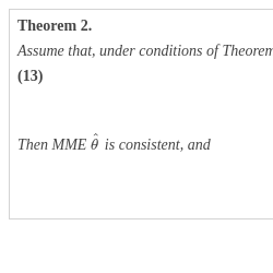 A random variable $\widehat{\theta }=(\widehat{\theta _{1}},\dots ,\widehat{\theta _{q}})$ is called MME for θ by the observations (1)