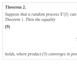 It was shown in [5] that any centered second-order wide-sense stationary process $X(t)$ that has the spectral density satisfies the conditions of Theorem 1. The process $Y(t)=\exp \{X(t)\}$ can be represented as product (9), and therefore the class of processes that satisfy the conditions of Theorem 2 is wide enough.
