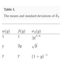 | $\alpha (y)$ | $\beta (y)$ | $\sigma _{2}(y)$ | 10 | 50 | 100 | 200 | |