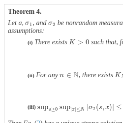 Let a, $\sigma _{1}$, and $\sigma _{2}$ be nonrandom measurable functions, and let Y be an adapted continuous stochastic process. Consider the following assumptions: