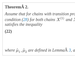 where ${G_{n}^{(t)}}=\sum _{k>n}{g_{k}^{(t)}}$, $\hat{G}_{n}=\sum _{k>n}\hat{g}_{k}$, and $\mathbb{P}$, $\mathbb{E}$ and $\hat{\mathbb{P}}$, $\hat{\mathbb{E}}$ are the probabilities and expectations on the canonical probability space for the chains Z and $\hat{Z}$, respectively.