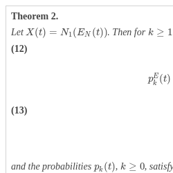 □We now state the relationship, in the form of a system of differential equations, between the marginal distributions of the processes $N_{1}(E_{N}(t))$ and $N_{1}(Y(t))$, with $Y(t)$ being the inverse process for $E_{N}(t)$.