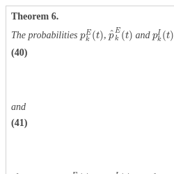\[\frac{d}{dt}{\hat{p}_{k}^{E}}(t)=-\beta {\hat{p}_{k}^{E}}(t)+\frac{\beta }{k+1}{p_{k}^{I}}(t)\](41)