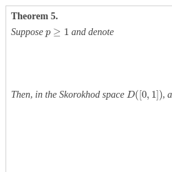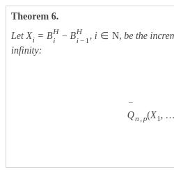 \[{\big(\big\| (X_{1},\dots ,X_{n})\big\| _{p}/{n}^{H}\big)}^{p}={n}^{-Hp}\sum \limits_{i=1}^{n}|X_{i}{|}^{p}\stackrel{a.s.}{\to }\left\{\begin{array}{l@{\hskip10.0pt}l}0,\hspace{1em}& p>1/H,\\{} c_{H}\hspace{1em}& p=1/H,\\{} +\infty ,\hspace{1em}& p<1/H,\end{array}\right.\]Theorem 6.