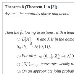 (a) $E[X]=0$ and X is in the domain of attraction of the normal law (i.e. there exists a sequence $(b_{n})_{n\ge 1}$ with $S_{n}/b_{n}\stackrel{d}{\to }\mathcal{N}(0,1)$).