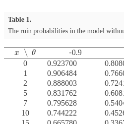 Next, we denote by $\psi _{0}(x)$ the ruin probability in this model where $\theta =0$. It is given by