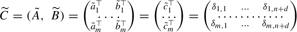 The entries of the matrix $\widetilde{C}$ are denoted ${\delta _{ij}}$; the rows are ${\tilde{c}_{i}}$: