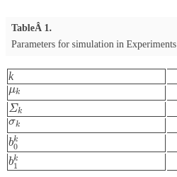 where ${X}^{k}\sim N({\mu _{k}},{\varSigma _{k}^{2}})$ and Y are the observed regressor and response, κ is the unobserved number of components, ${\varepsilon }^{k}$ is the regression error. The error ${\varepsilon }^{k}$ has zero mean and variance ${\sigma _{k}^{2}}$.