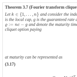 \[ V=K{e}^{-rT}\Bigg(\frac{n}{2}\frac{\partial {\mathbb{E}_{\mathbb{Q}}}[{Z_{1}}]}{\partial \sigma }-\frac{1}{\pi }{\int _{{0}^{+}}^{\infty }}\mathfrak{Re}\bigg(\frac{\partial {\phi _{Z}}(x)}{\partial \sigma }\bigg){x}^{-2}\hspace{0.1667em}dx\Bigg).\]