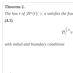 have a unique solution given by the density law of an inverse to a stable subordinator, say ${L_{t}}$ (see for example [2, formulas 3.4 and 3.5]). It is well known that ${L_{t}}$ (with ${L_{0}}=0$) is identical in law to a folded Brownian motion $|{B_{t}}|$ (with ${B_{0}}=0$), that is, u is the unique solution to the problem