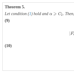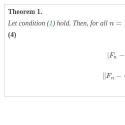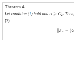 \[\begin{aligned}{}|{F_{n}}-({G^{n}}V+E){|_{\mathrm{K}}}& \leqslant C(d+1)\bigg({\mathrm{e}^{-Cn\gamma \alpha }}\sqrt{\frac{\gamma }{n}}+{(\beta +4\gamma )^{n}}\bigg),\\ {} \| {F_{n}}-({G^{n}}V+E){\| _{\infty }}& \leqslant C(d+1)\bigg(\frac{{\mathrm{e}^{-Cn\gamma \alpha }}}{n}+{(\beta +4\gamma )^{n}}\bigg).\end{aligned}\]Remark 1.