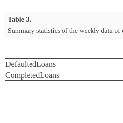 Summary statistics of the weekly data of defaulted and non-defaulted loans issued in Spain