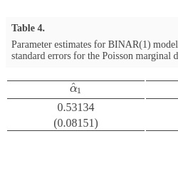 We estimated a number of BINAR(1) models with different distributions of innovations which include combinations of:
