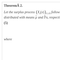 Thus, we have a new process ${\big({\tilde{U}_{t}}\big)_{t\ge 0}}$ with exponentially distributed premium and claim sizes, which is completely determined by ${\bar{\lambda }_{0}}$, ${\bar{\mu }_{0}}$, ${\lambda _{0}}$, ${\mu _{0}}$ and ${d_{0}}$. Now the assertion of the theorem follows immediately from Theorem 2.  □