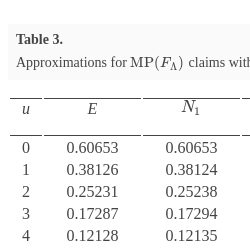 In this example claims have a $\text{MP}({F_{\Lambda }})$ distribution with $\Lambda \sim \text{Pareto}(3,1)$. For this distribution, $𝔼(\Lambda )=1/2$. Table 2 shows the approximations results in the same terms as in Table 1. Figure 3 shows the results graphically.
