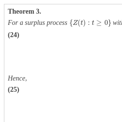 when the indicated set is not empty, otherwise $K:=0$. Note that $0\le K<\infty $ a.s. since $Z(t)\to -\infty $ a.s. under the net profit condition. The distribution of this random variable is established next.