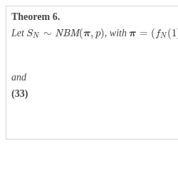 and the p.g.f. has the form ${G_{{S_{N}}}}(r)={G_{N}}({G_{X}}(r))$. The following is a particular way to write the distribution function of a NBM distribution.