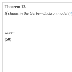 Now, given a compound binomial model (1) we can construct a Gerber–Dickson model (4) as follows. Let ${R_{1}},{R_{2}},\dots $ be i.i.d. $\text{Bernoulli}(p)$ random variables and define ${Y_{i}}={R_{i}}\cdot {X_{i}}$ where ${X_{i}}\in \{1,2,\dots \}$, $i\ge 1$, as in model (1). The distribution of these claims is ${f_{Y}}(0)=1-p$ and ${f_{Y}}(y)=p\cdot {f_{X}}(y)$, for $y\ge 1$.