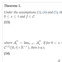 so that ${\overline{a}_{s}}$ is (λ-a.s.) well defined. We introduce also for $f\in \mathcal{C}$ the generator ${({\mathcal{A}_{s}^{V}})_{0\le s<t}}$ of the process V via