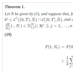 (H) For all $s\in (0,T]$, ${\textstyle\int _{0}^{T}}\mid K\mid ({(s,T],s)^{2}}ds<\infty $, where $\mid K\mid ((s,T],s)$ denotes the total variation of $K(.,s)$ on $(s,T]$.