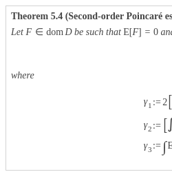 that are valid for every $F\in {C_{q}}$, $q\ge 2$, such that the mapping $z\mapsto {D_{z}^{+}}F$ verifies some minimal integrability conditions.5.6 Second-order Poincaré estimates