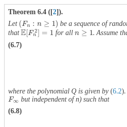 \[ \Delta ({F_{n}}):={\sum \limits_{r=2}^{\textit{deg}(Q)}}\frac{{Q^{(r)}}(0)}{r!}\frac{{\kappa _{r}}({F_{n}})}{(r-1)!{2^{r-1}}},\]Example 6.5.