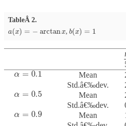 | $\alpha =0.9$ | Mean | 2.02509 | 2.01702 | 2.02024 | 2.01308 | 2.00626 | 2.00289 |