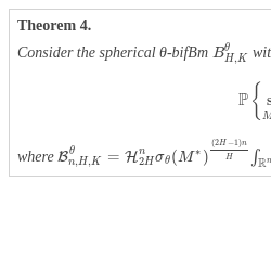 Our motivation for introducing $\theta >0$ in the covariance structures in Theorem 2 and propositions below is threefold. First, we try to give covariance functions more general as in [19, Theorem 1], but we consider negative exponents (as parameters $K<0$ in Theorem 2 or functions ${\nu _{j}}(M)<0$ in propositions below). Second, if negative exponents are considered, one has to face the problem that the covariance may explode. This is what makes the condition $\theta >0$ very crucial and why it cannot be dropped. Third, the necessary condition for the existence of bifBm on ${\mathbb{R}_{+}}$ (see [17]) to exist is trivial in our case $K<0$.