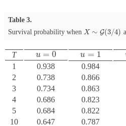 Survival probability when $X\sim \mathcal{G}(3/4)$ and $Y\sim \mathcal{G}(1/4)$