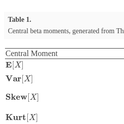 To demonstrate the algorithm in action, we list some first central moments of the beta distribution in Table 1.
